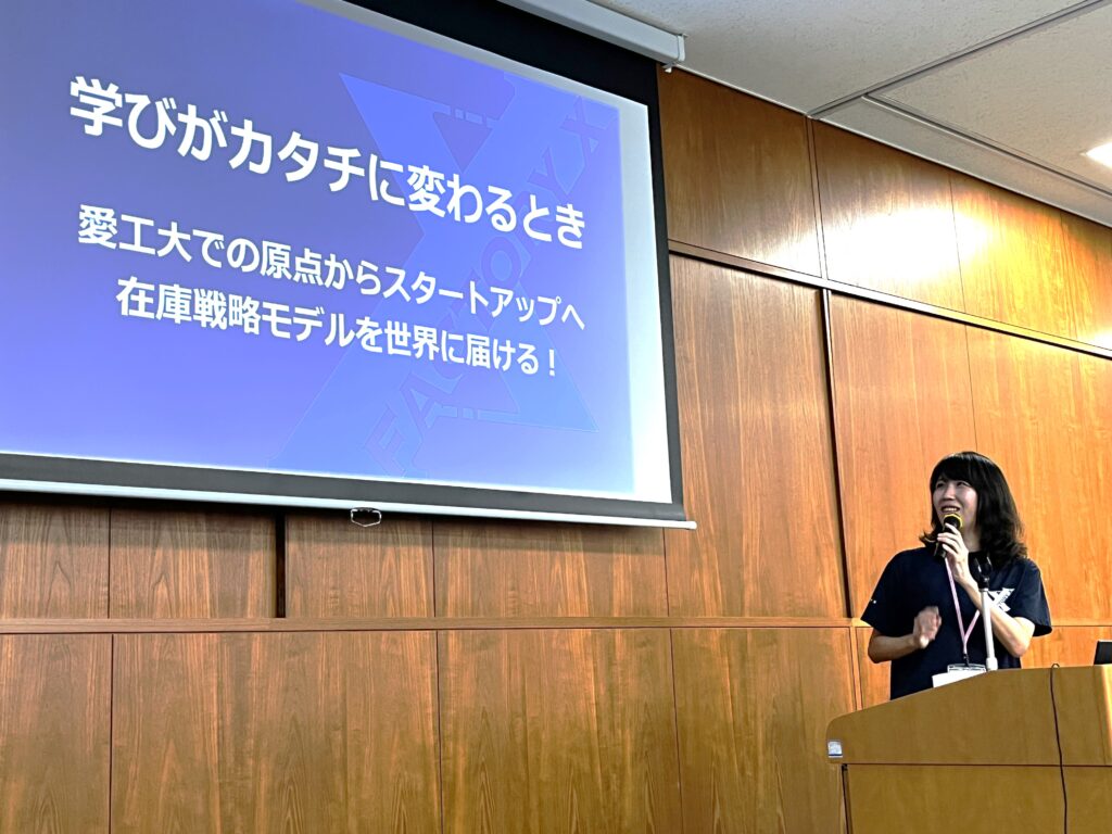 本学卒業後、青山学院大学大学院へ進学し、収益性を用いた在庫の価値評価モデルを独自に研究。2022年9月にFACTORY Xを創業。現在、「在庫戦略モデル」を開発中で、その取り組みが評価され、東洋経済「すごいベンチャー100・厳選7社」やNHK「プロジェクトX・未来のプロジェクトX」にて紹介される。2024年10月、名古屋・鶴舞に開業した日本最大級のオープンイノベーション拠点・STATION Aiのメンバーに採択。スタートアップとして、Best Awardを受賞。オープニングセレモニーではスペシャルセッション「製造業DXが日本を変える!」に登壇。